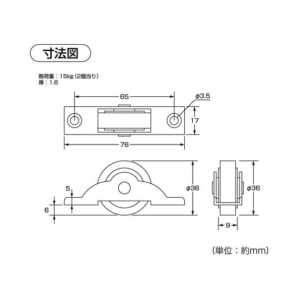 ハイロジック U-766 防音戸車 36mm(平) 2個入(CDC)【別送品】