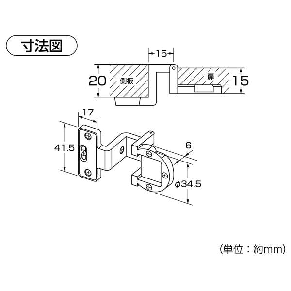 ハイロジック P-542 アングル丁番 AB色 15×20 1個入(CDC)【別送品】