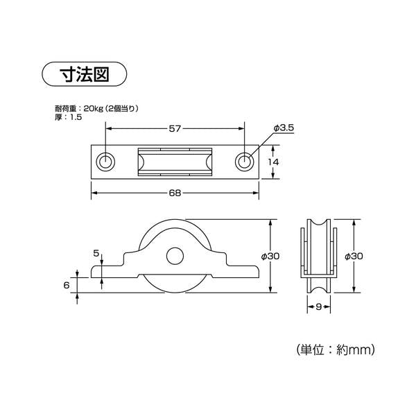 ハイロジック 72591 LP戸車 ステン枠 30mm(丸) 2個入(CDC)【別送品】