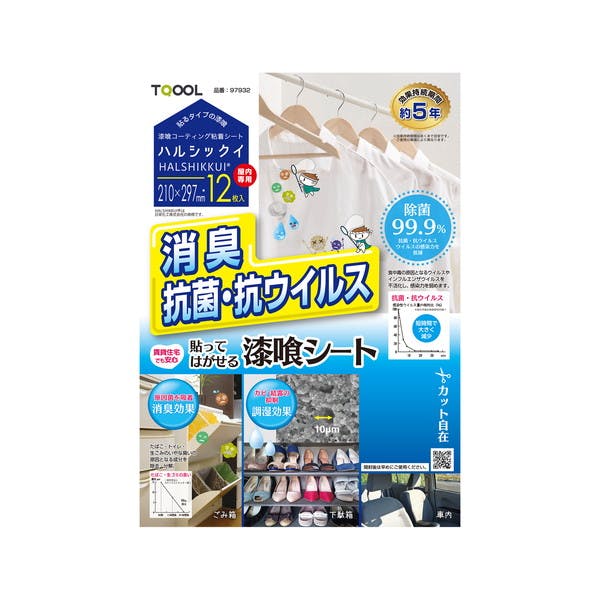 • ハイロジック TQOOL 消臭・抗菌・抗ウイルス 屋内専用 漆喰コーティング粘着シート 貼ってはがせる漆喰シート ハルシックイ A4サイズ(210x297mm) ホワイト無地 12枚入り 97932(CDC)【別送品】