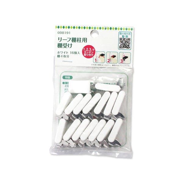 ハイロジック 98191 リーフ棚柱用棚受ケ ホワイト 16個入(CDC)【別送品】
