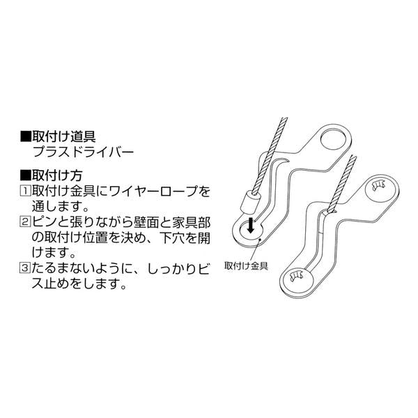 ■特徴:ワイヤーなので目立ちません■材質:ワイヤー・取付金具/ステンレス■サイズ:ワイヤー 400ミリ■入数:2本■2本での参考使用荷重:約20kg