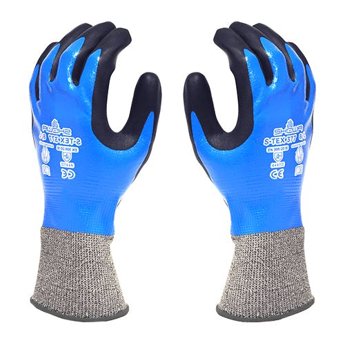 ●サイズ/S●カラー/ブルー●全長(mm)/260●中指長さ(mm)/75●掌周り(mm)/185●厚み(mm)/1.83●材質/繊維部:ナイロン・ポリエステル・ステンレスワイヤー混合糸樹脂部:ニトリルゴム●EU規格CE EN388耐切創レベル4水や油に触れても高いグリップ力を発揮します●ダブルニトリルゴムコーティングで高い摩耗性があります