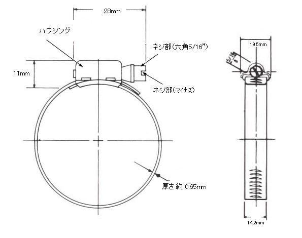 ●バンド幅/14.2mm●適合直径/79~152mm●入数/10個●材質/スクリュー:SUS305,バンド:SUS302●六角(-)ねじ/5/16”(8mm)●厚み/0.65mm●耐腐食性の高いステンレスなので船舶等への使用に適しています●ウォームの歯4枚を持つ六角ネジがバンドの溝をしっかりと固定します●オールステンレス製