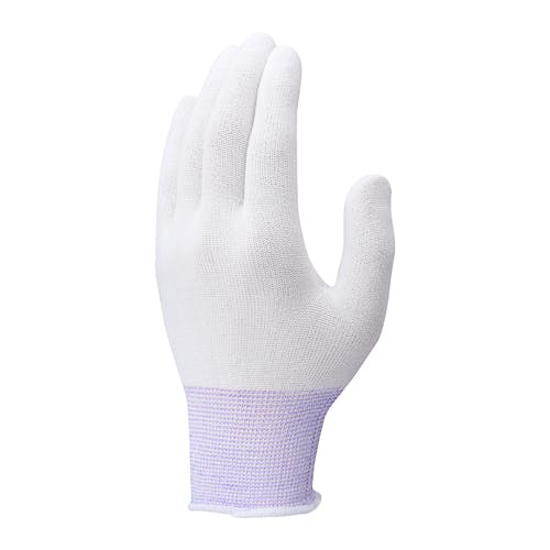 ●メーカー/ショーワグローブ●型番/B0910●サイズ/L●全長/180mm●厚み/0.7mm●掌周り/165mm●中指長さ/67mm●材質/ナイロン,ポリエステル,その他●カラー/本体:ホワイト手首:パープル●ディスポーザブル手袋の下ばきにも使用可能●長繊維を使用しているため,手袋からのホコリや糸くずの発生を抑えます