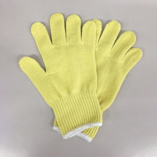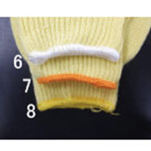 ●サイズ/S●全長(mm)/220●掌周り(mm)/180●中指長さ(mm)/65●入数/1双●材質/ケブラー紡績糸100%●厚み/2.5mm●カラー/本体:イエロー裾:ホワイト●EU規格CEEN388耐切創レベル3●10ゲージ●薄手でインナー手袋として使用可能●耐切創,難燃性に優れています