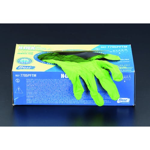 加硫促進剤を含まないので、アレルギーを起こしにくい手袋です。明るい色による高い視認性があります