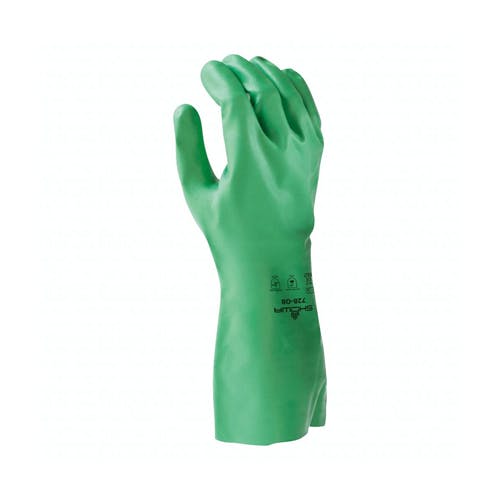 ●サイズ/M●材質/ニトリルゴム●カラー/グリーン●全長(mm)/330●厚み(mm)/0.38●掌周り(mm)/203●耐酸,耐薬品性●強い酸や化学薬品に対して耐性があるにもかかわらず,生分解性を備えています