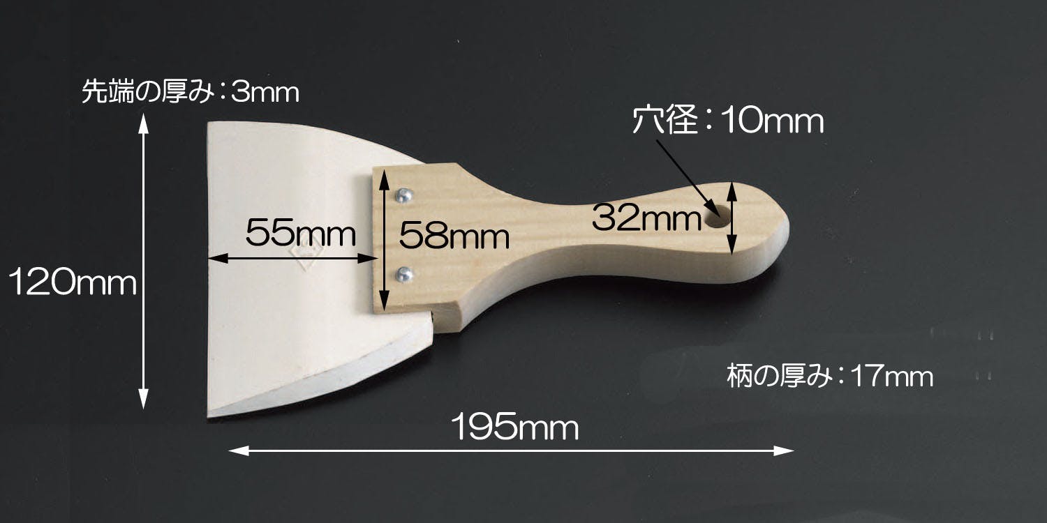 ●材質…天然ゴム●柄材質…木●用途…シリコンなどの液状商品の混ぜ合わせ、清掃などに●全長…195mm●柄の長さ…140mm●ゴムサイズ…120×55mm●ゴム部最高耐熱温度…80℃