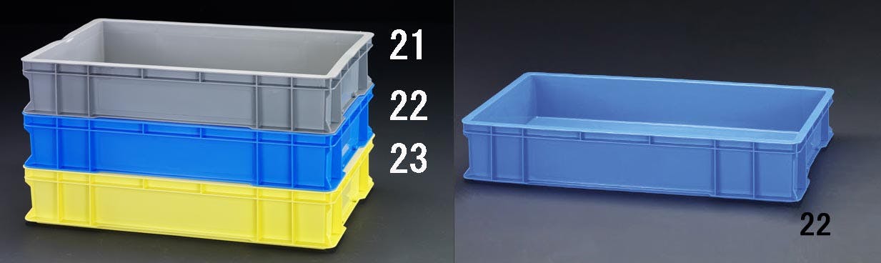 ●容量…28.4L●サイズ…外寸:658×448×122(H)mm内寸:618×408×115(H)mm有効内寸:608×398×105(H)mm●圧縮荷重…36.1kN(3680kgf)●色…ライトグレー●材質…ポリプロピレン●積み重ね可能