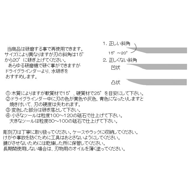 ●材質…刃:クロムバナジウム鋼、柄:木●刃硬度…RC59-61●全長…270mm●刃幅…30mm●刃長…37mm●重量…103g●研磨する事で再使用できます。