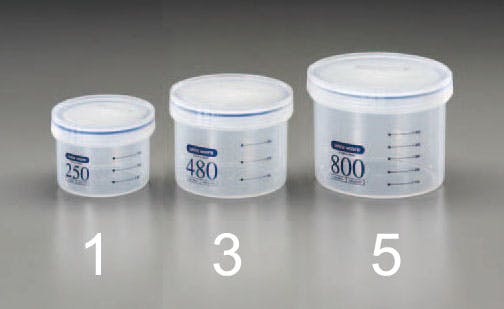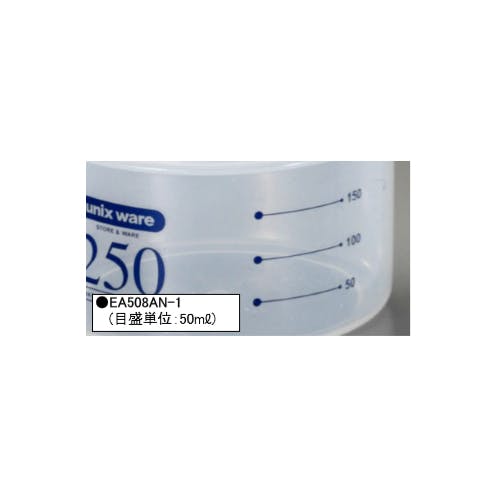 ●材質…ポリプロピレン●フタはねじ式●目盛単位…50ml●密閉性を高めるシリコンゴム製パッキン●抗菌仕様●容器表面の目盛によって内容量の確認が容易です。●容量(ml)…250●サイズ(mm)…φ89×64(H)