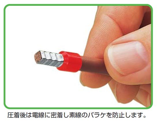 ●カラー…レッド●適用電線…1.0m平方m●先端サイズ…φ1.5×10mm●カラー部内径…3.0mm●全長…16.5mm●入数…100個●材質…フェルール:電気銅(錫メッキ)、絶縁体:ポリプロピレン●対応圧着ペンチ…EA538KD、EA538KC-2、EA538KH-16●圧着後は電線に密着し素線のバラケを防止します。●RoHS対応品