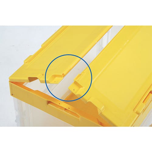 ●容量…49.8L●サイズ…外寸:530×366×340(H)mm内寸:492×334×304(H)mm有効内寸:492×333×304(H)mm●材質…ポリプロピレン●色…透明/イエロー●圧縮荷重…4.18kN(426kgf)●折りたたみ時全高…100mm●積み重ね可能●上枠両短辺、フタ上面、両短辺にラベル剥離用シボ面有●フタは方向性無く閉めることが可能