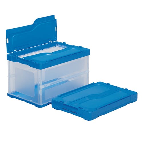三甲(サンコー) 折畳コンテナ(透明・青/蓋付) 530x366x334mm/51.0L EA506AA-208 4550061219102【別送品】