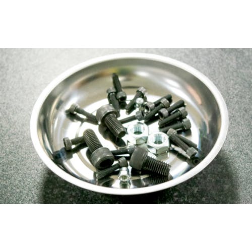 ●サイズ(mm)…φ107×32(H)●重量…160g●材質…ステンレス●裏面にマグネット付●裏面のマグネットには表面を保護するラバーコートが施されています。●修理・メンテナンス時の小さな金属部品や工具の紛失を防ぎます●トレーに部品を入れたまま、壁にくっつけることができます。