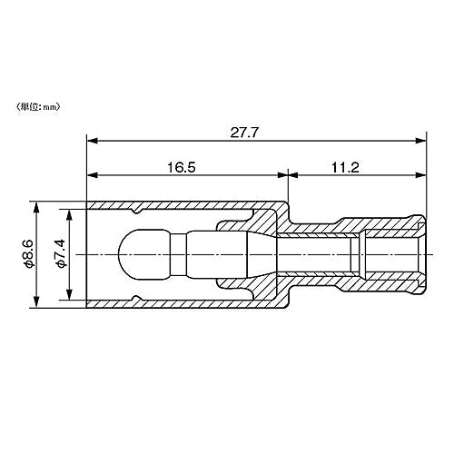 ●抱合範囲(燃線m平方m)…0.75~1.25●全長(mm)…27.7●入数…5個●材質…端子:黄銅(電気すずめっき)、スリーブ:無酸素銅管(電気すずめっき)、絶縁体:ナイロン●絶縁体使用温度範囲…-40℃~105℃●定格電圧…300V