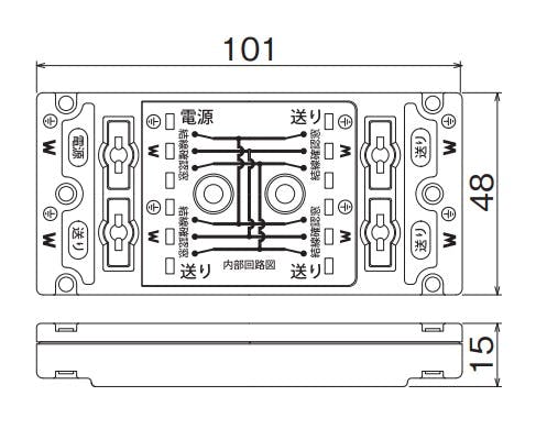●メーカー…明工社●型番…MJ2497●定格…20A・300V●適用電線…VVF線φ1.6mm×3心、φ2.0mm×3心●サイズ…101×48×15mm●3分岐●結線完了表示付●VVFケーブルの配線を分岐する事が出来ます。●VCTケーブルで接続する場合はEA538PM-101・-106を使用してください。●ねじ無し