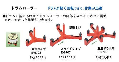 ●メーカー…マーベル(MARVEL)●型番…E-6709●ゴム車輪径…75mm●耐荷重…600kg●スチール製フレーム●固定用ロープ付●ドラムの径にあわせてドラムローラーの脚部をスライドさせて調節でき、安定した作業ができます。●最大使用ドラム径…1200mm●重量ドラム用●サイズ…φ440~620×250(H)mm●重量…10.5kg●軸径…42.7mm