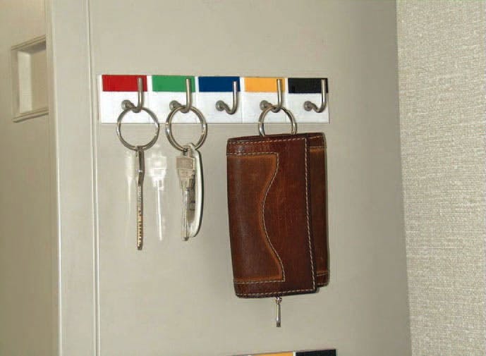 ●全長…165mm●耐荷重…1.5kg●材質…本体:アクリル樹脂色板:塩ビ金具:真鍮●5連組●切り離して使えます。●のり付