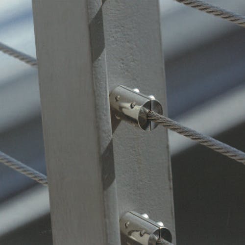 ●適合ワイヤー径…3mm●全長…27mm●直径…22mm●最高引張力…3.6kN●材質…SUS303●重量…70g●(1×19)ワイヤー不可