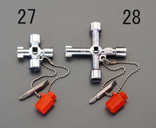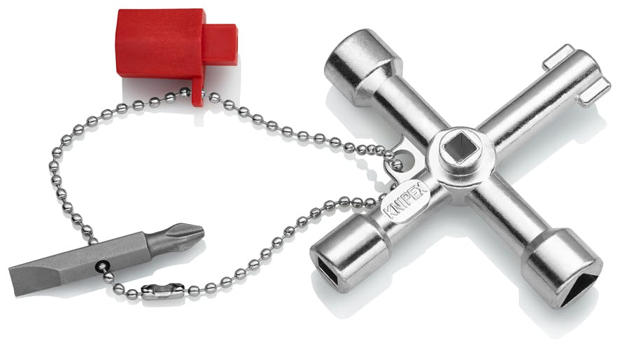 ●メーカー…KNIPEX(クニペックス)●型番…001103●材質…亜鉛ダイキャスト●四角…5・6・8mm●三角…9mm●かぎ型…9mm●ビット…(+)#2×(-)7mm●全長…76mm●重量…80g●ビットアダプター付●ビル等の建設現場におけるエアコン・換気システムのメインスイッチのコントロールに。●ガス・水道・電気の供給をコントロールボックスにて遮断する際に。