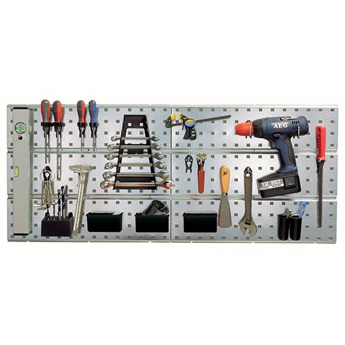 ●穴のあいたパネルにフックなどを掛けて、自在にカスタマイズできる工具収納ラックです(※フック・ホルダー類は別売です。関連商品をご覧ください。)●サイズ…440×520mm●壁取付ねじ穴径…5mm(6か所)●ビスは付いておりません。●材質…スチール●入数…2枚●重量…2.6kg