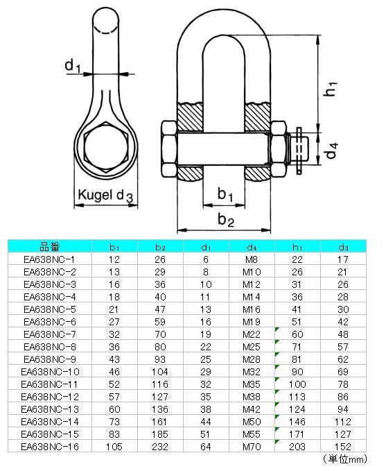 強力型シャックル 13.5ton EA638NC-12 4518340747210【別送品】