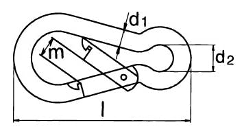●内寸…56×19mm●線径…7mm●開口…8mm●使用荷重…180kg●材質…SUS316●サイズ(mm)…d1:7、d2:10、m:8、I:70●重量…44g