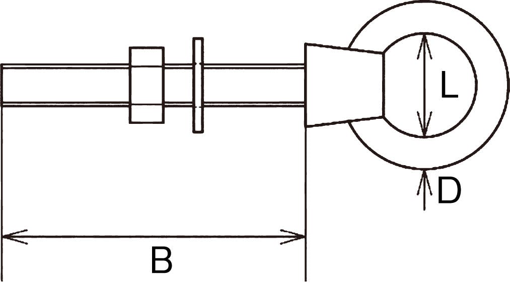 ●材質…SUS304●ねじ径…M10●線径…8mm●リング内径…24mm●ねじ長…80mm●使用荷重…150kg●付属品…六角ナット(1個)、丸ワッシャー(1個)●重量…118g●サイズ(mm)…D:8、L:24、B:80
