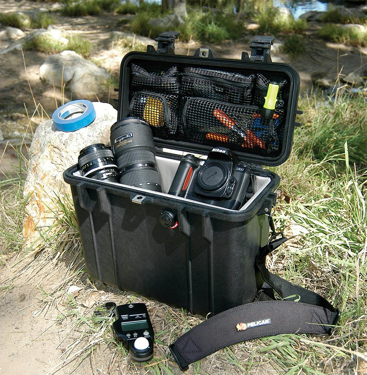 ●メーカー…PELICANPRODUCTS●型番…1430NF●IP67●市販の南京錠で施錠可能●ウレタンなし●色…ブラック●サイズ…(内寸)344×146×297(H)mm、(外寸)430×244×341(H)mm●重量…2.5kg