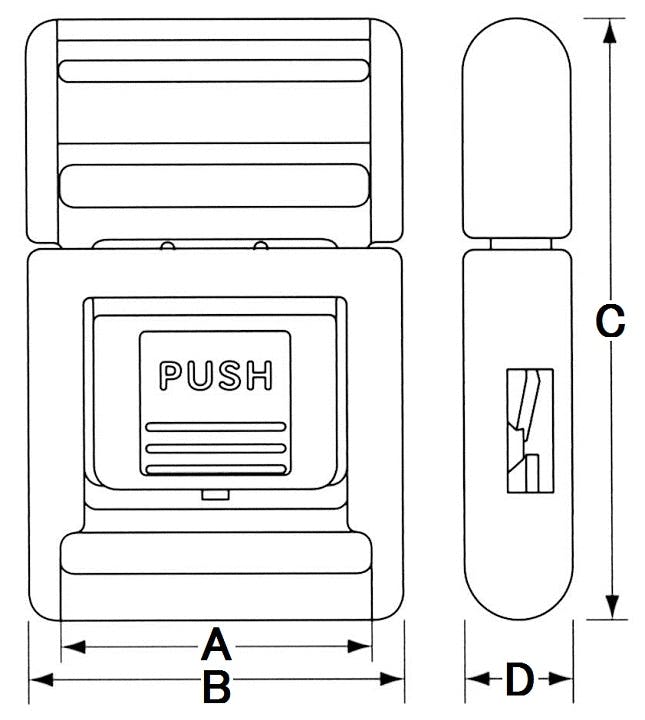 ●材質…プラスチック●フロントプッシュリリースタイプ●適用バンド幅(A)…25mm●サイズ(B×C×D)…32×50×9mm