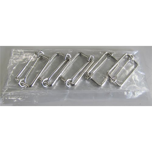 ●適用バンド幅…25mm●サイズ…40.2×21.2mm●線径…3mm●重量…7.5g●材質…鉄(ニッケルメッキ)●用途…平バンド用金具●入数…5個