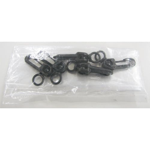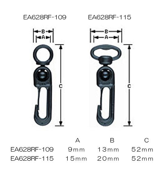 ●材質…ポリアセタール樹脂●サイズ A…15mm●サイズ B…20mm●サイズ C…52mm●開口幅…4.0mm●平均使用荷重…27.2kg●入数…5個●フック部分は360゚どの方向にもスムーズに揺動および回転します。