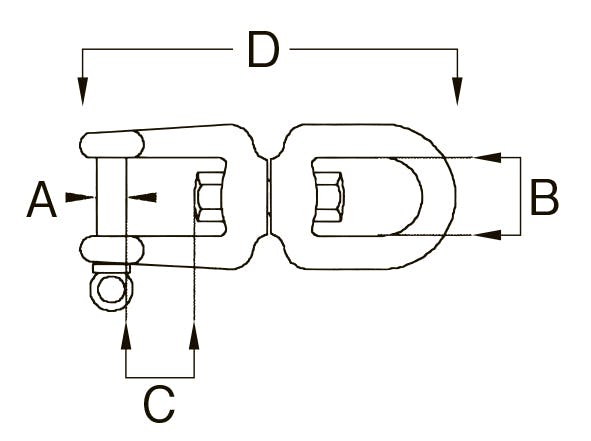 ●使用荷重(t)…1.18●サイズ(mm)…A:12.7、B:25.4、C:28.4、D:152.4●材質…ステンレス(SUS316)●重量…630g●ステンレスで錆に強く使用場所を選びません。