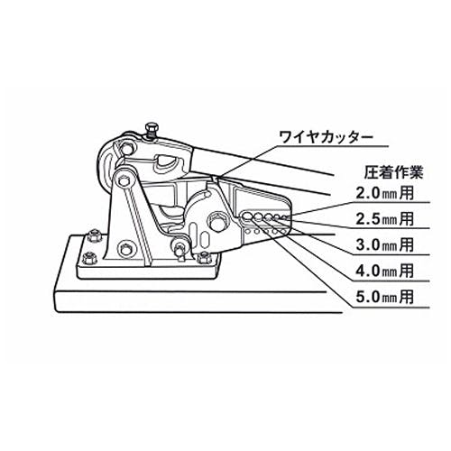●圧着範囲…2.0~5.0mm●切断能力…φ5.0mmまで●全長…550mm●重量…5.9kg●材質…ハンドル部:鍛造ヘッド部:鍛造台座:木●2mm~5mmのワイヤロープの切断・圧着加工にご使用頂けます。●ンチタイプなので安定した作業が可能