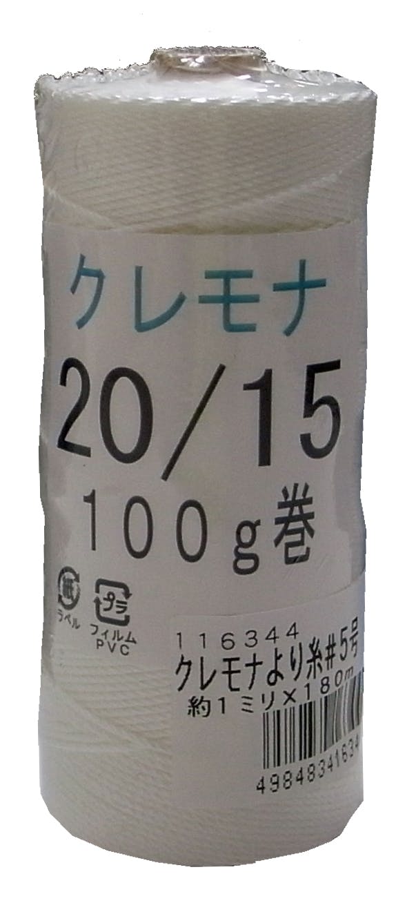 ●径(mm)…約1.0●番手…#20●全長(m)…180●引張強度…強度を必要とする用途には使用不可●重量(g)…100●材質…クラレビニロン●構造…3本撚り●カラー…白●結びやすい繊維です●耐候性・耐水性に優れたクレモナより糸です。●網やネットの補修やハンギングに。