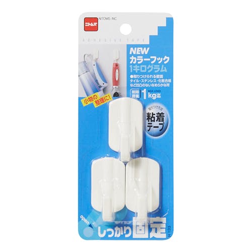 ●メーカー…ニトムズ●型番…H133●耐荷重…1kg●サイズ…26×49×22mm●フック口幅…13mm●材質…スチロール樹脂●入数…3個●粘着タイプ