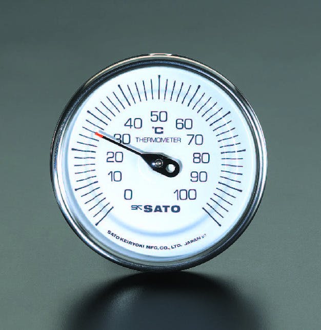 ●メーカー…佐藤計量器製作所●型番…BM-T-90S●オールステンレス●ケース外径…101mm●取付ネジ…PT1/2"●感温部径…8mm●ダイヤル径…90mm●室内用●測定範囲(℃)…0~200●感温部長(mm)…200●1目盛…5℃●総重量…約380g