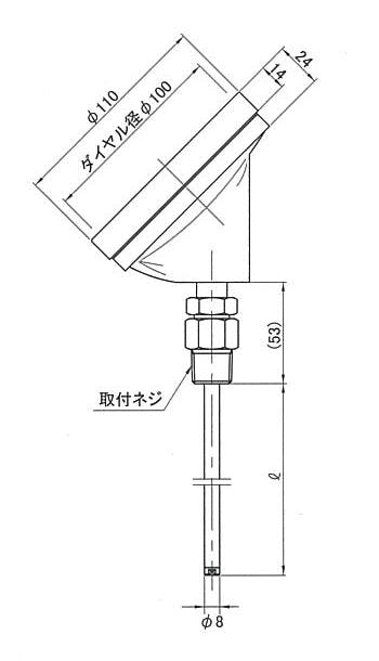 ●メーカー…佐藤計量器製作所●型番…BM-R-100P●室内用●ダイヤル径…100mm●ケース外径…110mm●45°タイプ●取付ねじ…R1/2"(真鍮)●ケース材質…プラスチック●感温部径…8mm(真鍮)●測定範囲…0~50℃●感温部長…100mm●1目盛…1℃