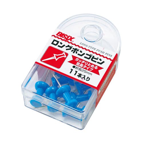 ●針長…25mm●カラー…ブルー●材質…PS樹脂、鋼線●入数…11本●収納便利なPSケース(フック式)●25ミリの針でしっかりさせるプッシュピン。