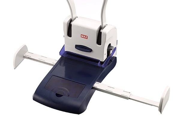 ●メーカー…マックス(MAX)●型番…DP-120●穿孔能力…120枚●穴径…6mm●穴間隔…80mm●穴奥行…12mm●サイズ…140(W)×245(D)×135(H)mm●重量…1.7kg●厚い書類も、軽い力で一気に穴あけができます。