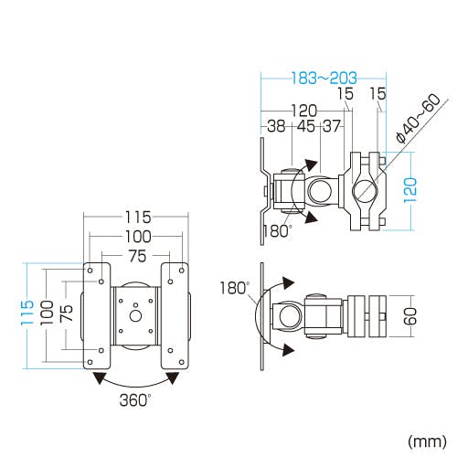 ●メーカー…サンワサプライ●型番…CR-LA353●※注意※…【お客様組立品】●材質…スチール●付属品…ディスプレイ取り付け用ねじ(M4×10)●可動範囲…画面回転(ローテーション)/360°、画面左右(パン)/180°、画面上下(チルト)/180°●対応サイズ…24型まで●耐荷重…10kg●アーム長…183~203mm●適応支柱径…40~60mm●重量…1.3kg