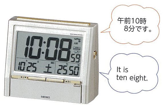 ●メーカー…セイコー(SEIKO)●型番…DA206W●電波受信機能●周波数…40kHz/60kHz自動選局●電源…単3電池×2本(付属)●★バイリンガル音声報時(日本語・英語)●機能…音声アラーム、スヌーズ、ライト、フルオートカレンダー、温湿度表示、アラームモニター●サイズ…122(W)×62(D)×108(H)mm●※付属電池はテスト電池ですので新しい電池をご購入下さい。