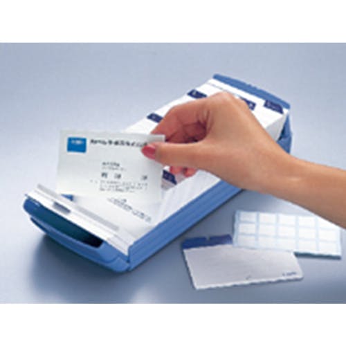 ●メーカー…カール事務器(CARL)●型番…860E-B●サイズ(W×D×H)mm…99×199×73●収容数…600●重量(g)…240●材質…ABS●付属品…見出しカード24枚(50音表示カード16枚、無地カード8枚)、見出しシール、仕切り板1枚●ワイドオープン機構で本体の両端が開き、名刺の検索と取り出しがスピーディーに行えます。●検索しやすいワイドオープン方式の名刺整理器