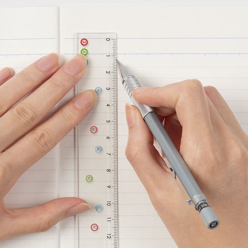 ●測定目盛…17cm●サイズ…179×25×2.2(t)mm●材質…PMMA●重量…13g●ノート分割術とは…ノートを分割して使う活用術。理解がより深まり、記憶を定着させる効果があるとされ、ノートを取ることが苦手な人も効率よく勉強できるようになります。●定規の穴を利用し、分割線を引けます。