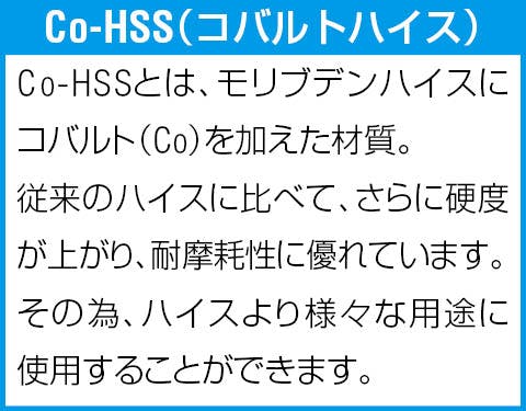 ●メーカー…不二越(NACHI)●型番…GLSD2.2×100●材質…Co-HSS(コバルトハイス)●用途…一般構造圧延鋼、炭素鋼、合金鋼、ダイス鋼●刃先径…2.2mm●全長…100mm●溝長…40mm●入数…1本入り●TiNコーティング