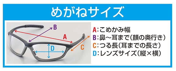 ●レンズカラー…クリアー●ポリカーボネートレンズ●UVカット●めがねサイズ…A:150mm、B:110mm、C:85mm、D:50×70mm●サイドに通気孔付