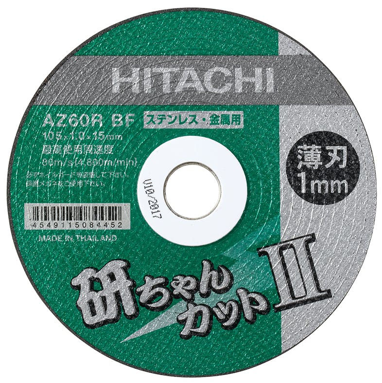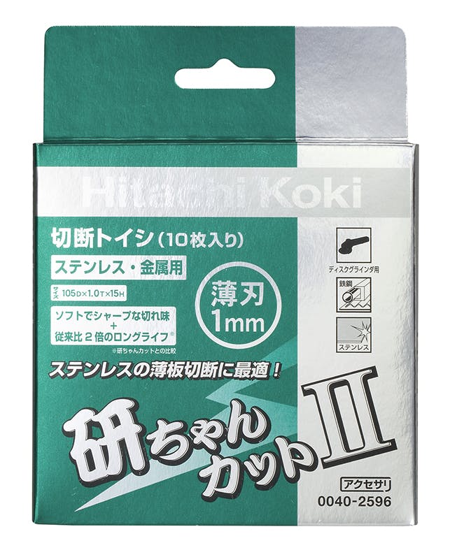 ●メーカー…HiKOKI●型番…0040-2596●用途…ステンレス、金属、非鉄金属の切断に●外径×厚み×穴径…105×1.0×15mm●粒度…AZ60RBF●最大回転数…14500rpm●入数…10枚入り●切断スピードが早く、ステンレス切断に最適です。●入数…10枚