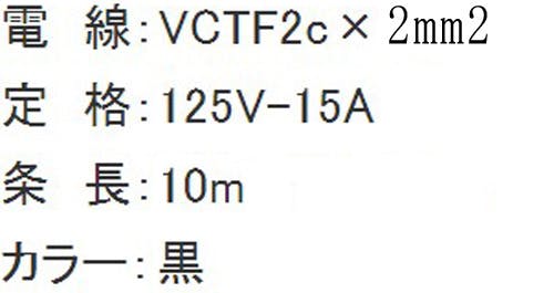 ●メーカー…正和電工●型番…MR-10●コンセント定格…125V・15A (1500Wまで)●電線仕様…VCT2.0m平方m×2心●コンセント数…3個●コード長…10m●重量…1.3kg